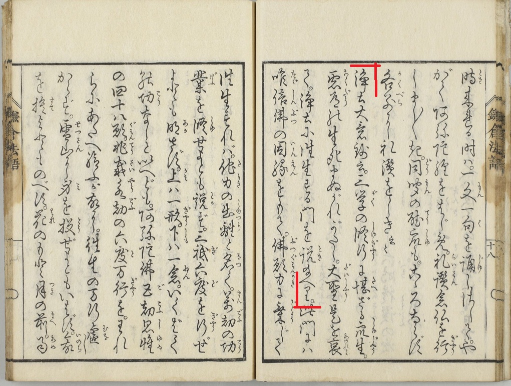 『浄土大意鈔(じょうどだいいしょう)』に云(い)わく、三学(さんがく)の修行(しゅぎょう)は堪(た)えざる衆生(しゅじょう)、悪道(あくどう)の生死(しょうじ)まぬがれがたし。大聖(だいしょう)これを哀(あわ)れみて、浄土(じょうど)に往生(おうじょう)する門(もん)を説(と)きたまえり。